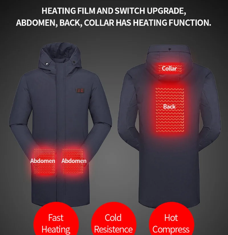 Good Product 2019 Men Winter White Duck Down Jacket Fishing Clothes USB Heated Hooded Outdoor Thermal Fishing Hi